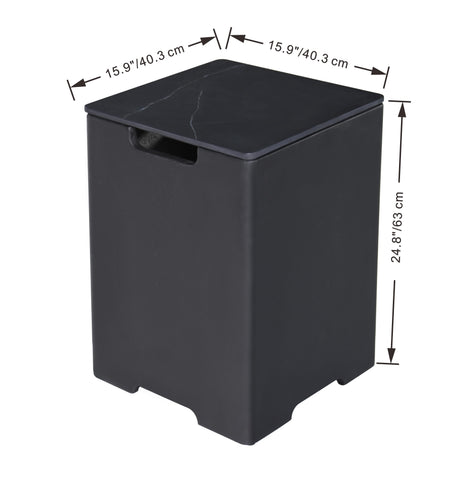 Refine your outdoor living space with our Elementi Plus propane tank covers, made from handcrafted GFRC and accented with elegant marble detailing. Built for strength and style, these lightweight covers are easy to reposition and thoughtfully designed to match the sophisticated finish of your Elementi Plus fire table. A premium solution that combines functionality with elevated design.